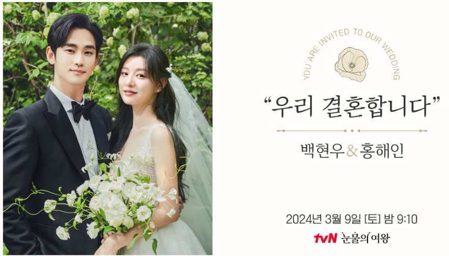 카테고리 없음 [tvN 눈물의 여왕] 백현우&홍해인, 결혼식에 초대합니다 by 이슈 인사이더 2024. 5. 21. 반응형 [ tvN 눈물의 여왕 ] 백현우 & 홍해인 결혼식 "세기의 결혼... 세기의 전쟁?" 퀸즈 그룹 재벌 3세, 백화점의 여왕 '홍해인'. 용두리 이장 아들, 슈퍼마켓 왕자 '백현우'. 3년차 부부의 아찔한 위기와 기적처럼 다시 시작되는 사랑 이야기 세기의 결혼 백현우(김수현) 인스타그램 바로가기 홍해인(김지원) 인스타그램 바로가기 <눈물의 여왕> 티저 영상 반응형 공유하기 게시글 관리 이슈 인사이더 저작자표시 비영리 변경금지 (새창열림)